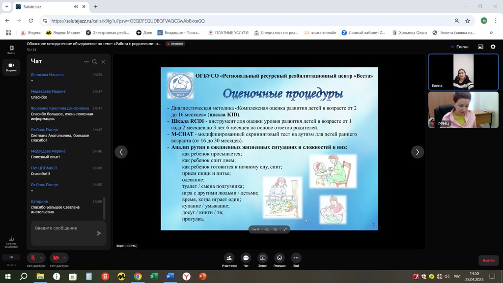 • Елена Александровна Калашнова, психолог ОГБУСО «Региональный ресурсный реабилитационный центр «Веста» г. Ангарск, поделилась опытом социально-психологического сопровождения семей с детьми с ОВЗ и инвалидностью (на примере отделения ранней помощи).