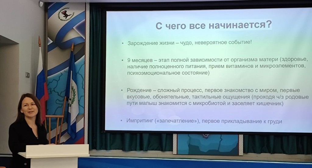 С докладом на тему «Инвестиции в здоровье нации. Трехлетний период» выступила Дорофеева Татьяна Юрьевна, врач неонатолог, педиатр, пульмонолог ОГАУЗ «Городская Ивано-Матренинская клиническая больница», ассистент кафедры «Педиатрии и детской хирургии» Иркутского государственного медицинского университета.