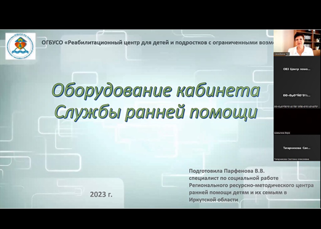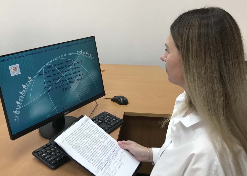 Открыла вебинар Любовь Владимировна Питерс, руководитель Регионального ресурсно-методического центра ранней помощи детям и их семьям в Иркутской области.Она рассказала участникам о мероприятиях по формированию региональной системы ранней помощи и её функциях. Также познакомила коллег с целями и задачами системы ранней помощи региона – организация эффективного межведомственного взаимодействия, раннее выявление отклонений в развитии и ограничений жизнедеятельности детей, оптимальное развитие и адаптация детей, интеграция семьи и ребёнка в общество и повышение компетентности родителей.Кроме этого, в своей презентации Любовь Владимировна представила схему межведомственного взаимодействия при реализации программы ранней помощи в Иркутской области.В завершение руководитель ресурсного центра отметила, что ранняя помощь – это область научных знаний, объединяющая учёных и практиков для оказания качественной, доступной и эффективной помощи детям раннего возраста, которые имеют ограничения жизнедеятельности, и их семьям.Специалист по социальной работе учреждения Лариса Викторовна Балуткина представила результаты и анализ опроса о развитии системы ранней помощи детям и их семьям в Иркутской области на базе учреждений социального обслуживания. Опрос проводился в августе 2023 года, в нём приняло участие 21 учреждение Министерства социальной защиты, опеки и попечительства, в которых созданы и работают службы ранней помощи.О том, какие требования существуют к кабинетам для предоставления услуг ранней помощи, рассказала участникам вебинара специалист по социальной работе Виктория Валентиновна Парфёнова. «Одно из главных условий — ничто не должно отвлекать ребёнка от занятия. Специалист подбирает набор игрушек или другое оборудование индивидуально под потребности каждого отдельно взятого ребёнка», — резюмировала она.Напомним, ОГБУСО «Реабилитационный центр для детей и подростков с ограниченными возможностями» определён площадкой для создания Регионального ресурсно-методического центра ранней помощи детям и их семьям в Иркутской области. Служба ранней помощи работает в учреждении с декабря 2017 года. Услуги предоставляются детям целевой группы от 0 до 3 лет включительно и членам их семей.