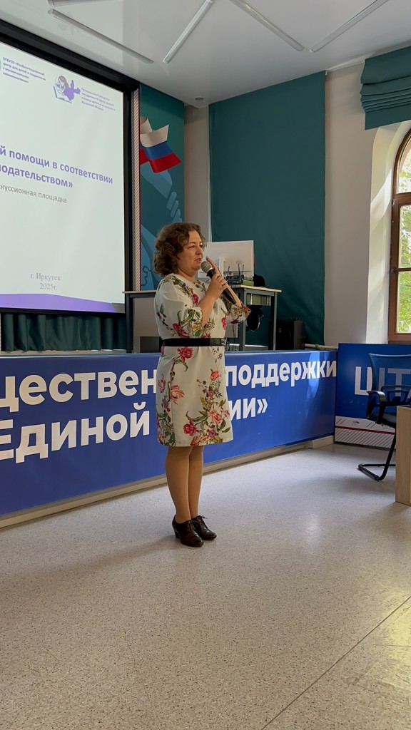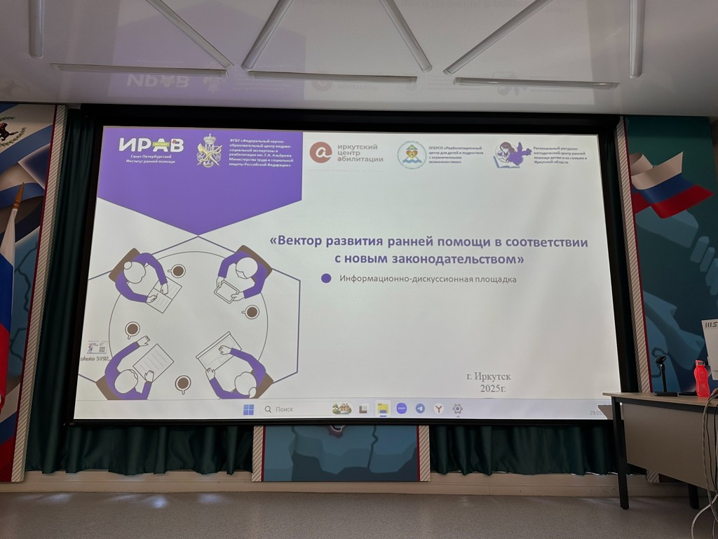 Сегодня состоялась информационно-дискуссионная площадка “Вектор развития ранней помощи в соответствии с новым законодательством”. В ней приняли участие те, кто заинтересован в развитии ранней помощи в регионе – это ведущие специалисты ранней помощи, руководители учреждений, где оказываются такие услуги детям и их семьям, представители министерств, а также представитель аппарата Уполномоченного по правам ребёнка Иркутской области. Организовано мероприятие Иркутским центром абилитации совместно с нашим учреждением и Региональным ресурсно-методическим центром ранней помощи детям и их семьям Иркутской области.