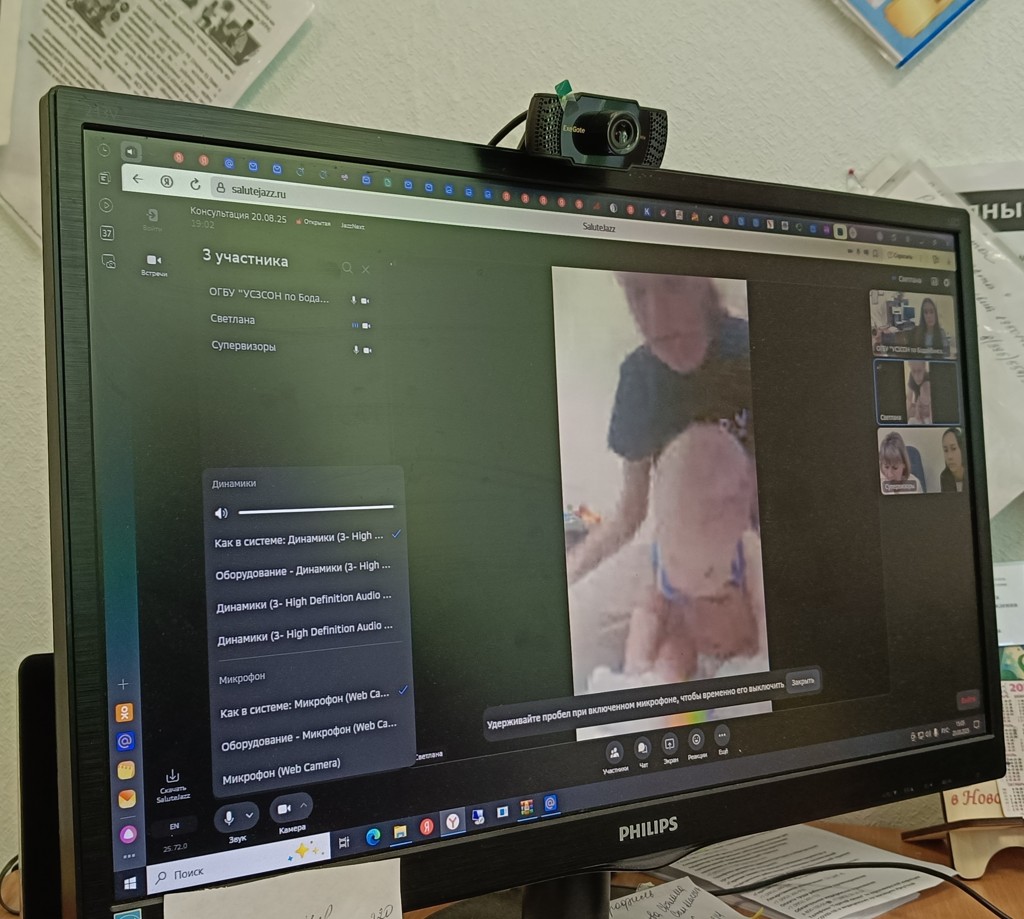 Семья проживает в отдаленном поселке, поэтому онлайн встреча прошла в трехстороннем формате: семья в п. Перевоз, специалисты ОГБУ «УСЗСОН по Бодайбинскому району» в г. Бодайбо и специалисты «Регионального ресурсно-методического центра ранней помощи детям и их семьям» в г. Иркутске.