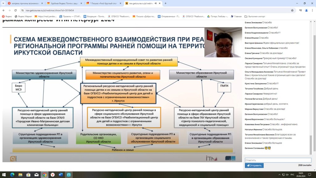 Семейкина Татьяна Владимировна, к.п.н., директор нашего учреждения выступила с докладом «Опыт внедрения единой информационной системы в сфере ранней помощи с переходом в комплексную реабилитацию как необходимое условие, обеспечивающее доступность и качество услуг для детей, их семей на территории Иркутской области».