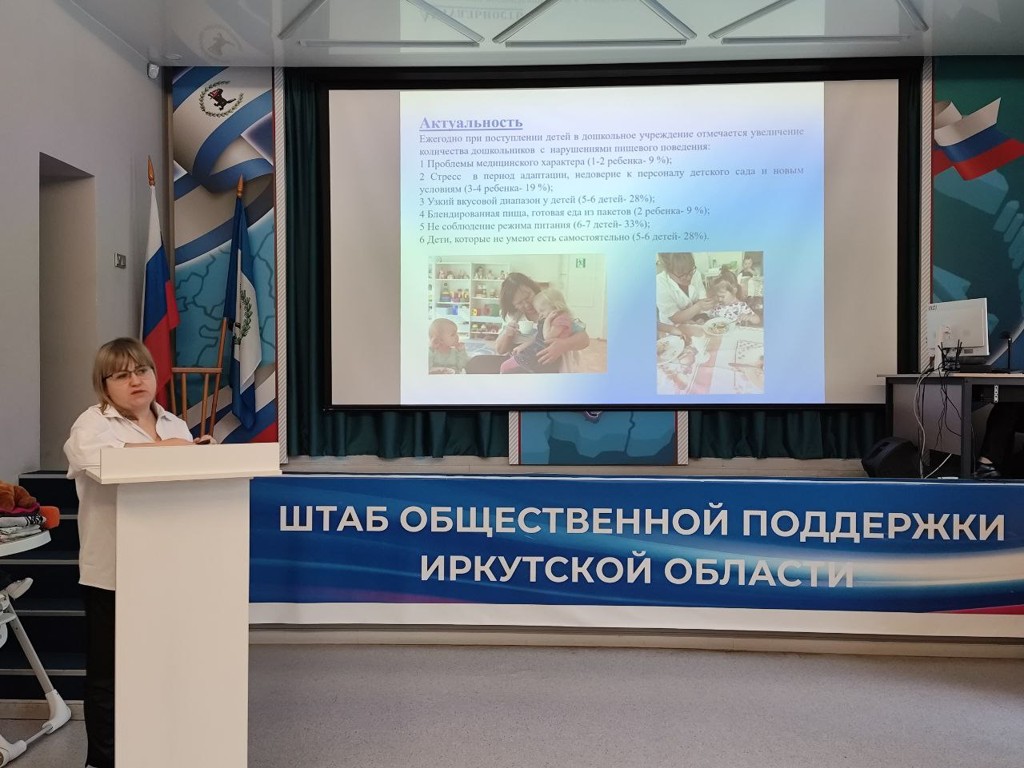 В рамках площадки был представлен опыт работы специалистов ГАУ «Центр психолого-педагогической, медицинской и социальной помощи» с детьми с нарушениями пищевого поведения. Ярощук Татьяна Геннадьевна, учитель-дефектолог, руководитель ресурсно-методического центра ранней помощи в системе образования Иркутской области и Хангалова Нина Михайловна, учитель-дефектолог выступили с докладом «Влияние рутины «Кормление» на развитие ребенка».