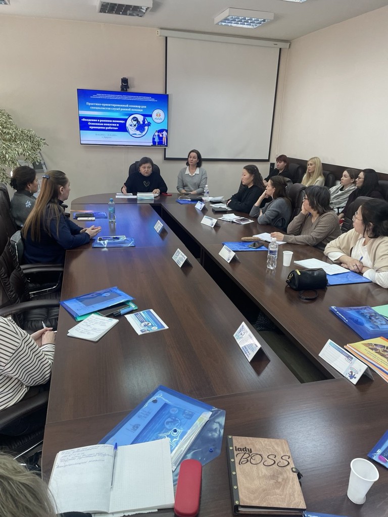 В первый день семинара участники изучали вопросы организации и оказания услуг ранней помощи, познакомились с терминологией, принципами и подходами ранней помощи, с правилами проведения первичного приёма, рассмотрели вопрос анализа и интерпретации результатов опросника KID-RCDI 2000 - для комплексной оценки развития ребенка в возрасте от 2 месяцев до 3.5 лет. После теоретической части гости приняли участие в практикуме по заполнению протокола первичного приёма.